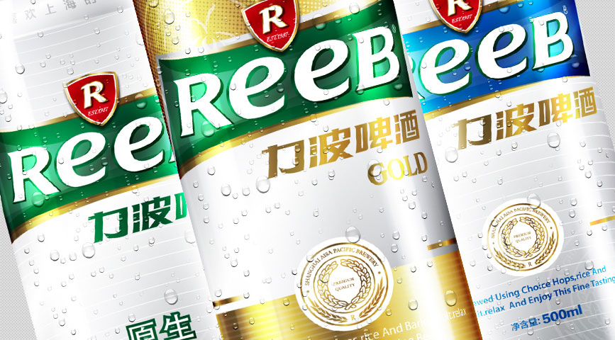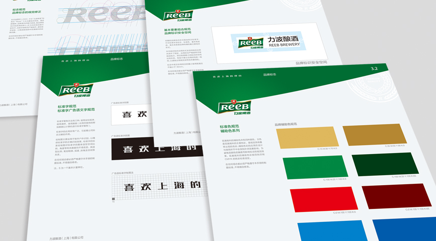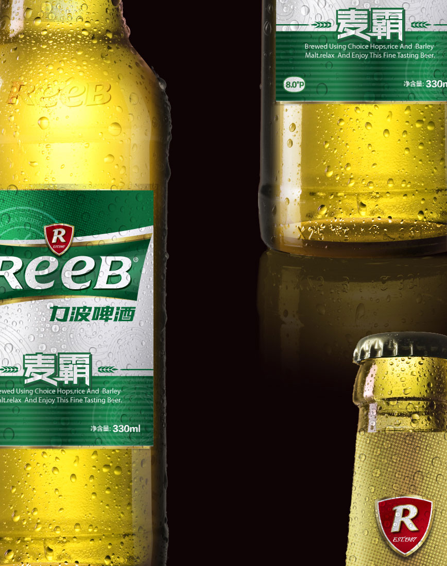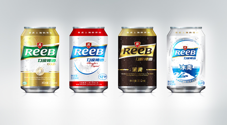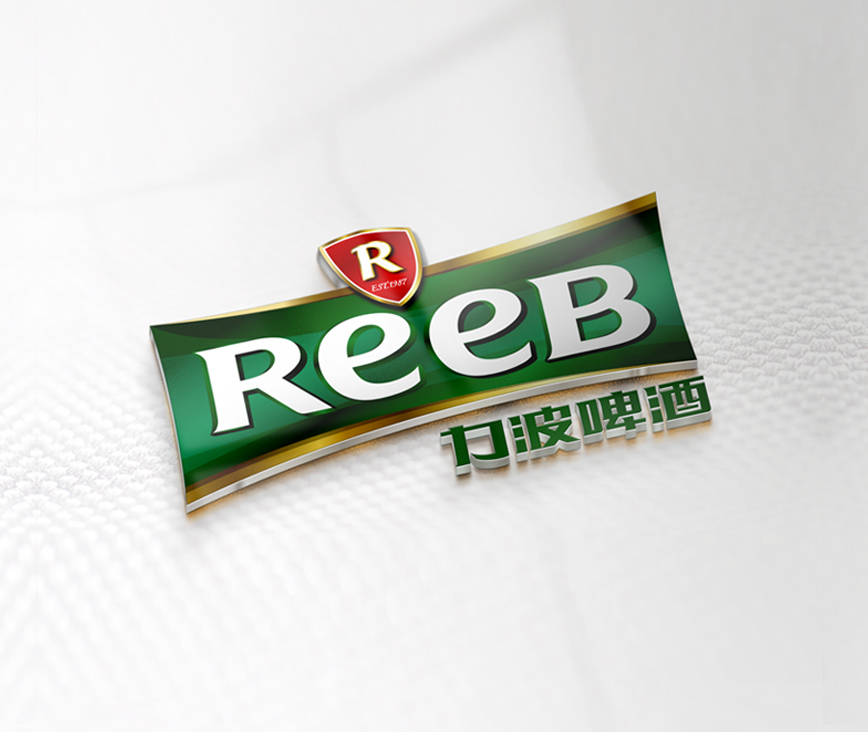 造型:“REEB”字體的設計工業性太強,優化英文字體設計,在設計界首次運用字母大小寫穿插的手法,強化笑臉的ee的視覺感,增強親和力。R標元素、盾形、四邊形、力波啤酒中文字體進行深度優化。提現年輕人的張力與銳氣,朝氣等氣質元素,提升品質感。