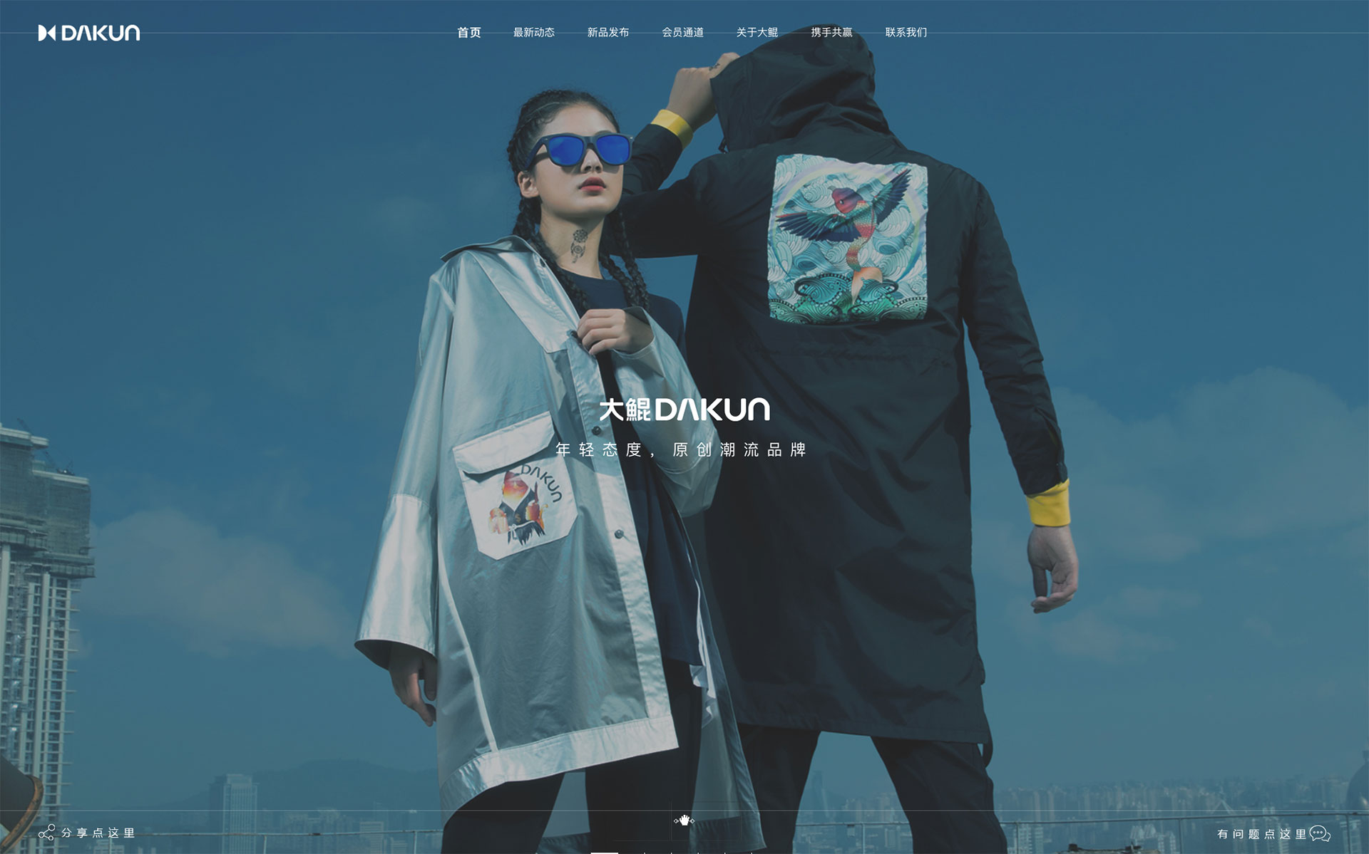 “大鯤DAKUN” 中國輕奢微潮品牌,做青年的全天候生活顧問。涉及男裝女裝、家居用品、彩妝護理、潮流童裝、鞋品箱包、服飾配件、潮流食品、數碼配件8大產品系列。大鯤堅持原創的時尚態度,通過對華夏文化的傳承和再生,讓服飾有了新的詮釋和演繹。提倡“實穿”的穿衣理念,輕奢的潮流風尚完美結合,搭配精湛的工藝打造完美細節,讓潮流設計與日常生活完美融合。