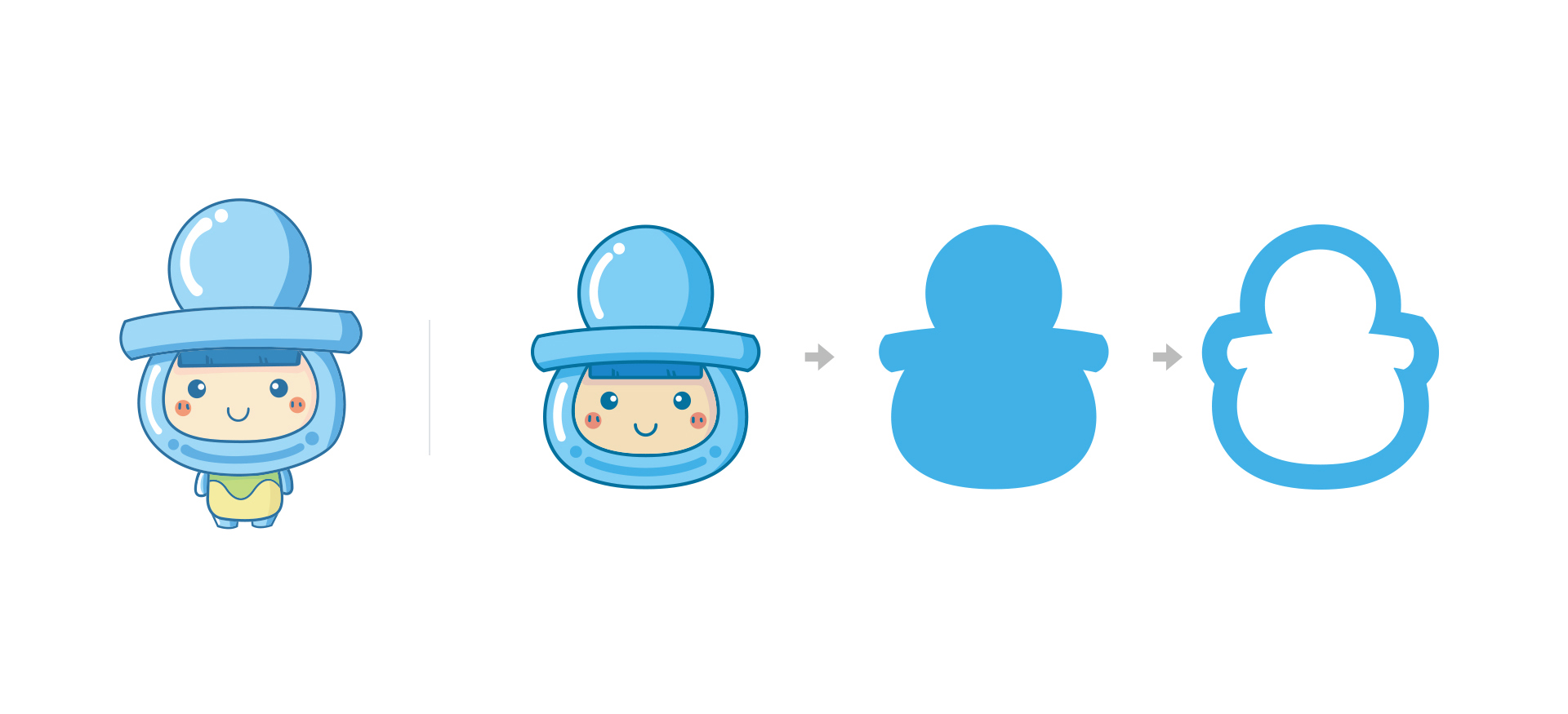 以母嬰行業(yè)作為軸線,如何尋找消費者對這個行業(yè)的認知原形?在前期的大量調(diào)研訪談中,我們發(fā)現(xiàn)安撫奶嘴是消費者對母嬰、孩童最具價值聯(lián)想的載體。而事實恰是如此,在日常生活中,我們能隨處可見媽媽懷里的寶寶嘴里叼著一只安撫奶嘴,懵懂而可愛。安撫奶嘴,就是我們需要尋找的那個代表母嬰和孩童的認知原形。加上愛心、親和力的情感屬性。最終運用以安撫奶嘴為雛形,設(shè)計吉祥物。