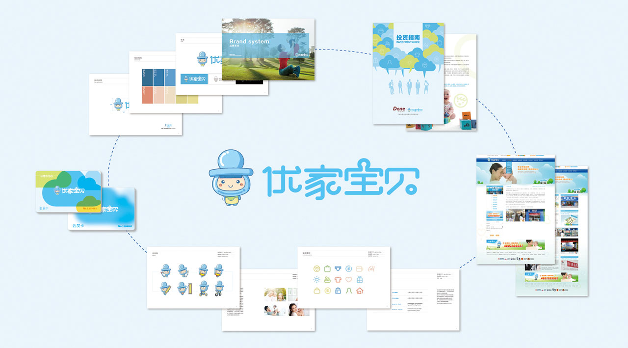 優(yōu)家寶貝作為新生母嬰特許連鎖品牌,強化“東恩資本”品牌背書,建立完善企業(yè)MIS理念識別系統(tǒng)。