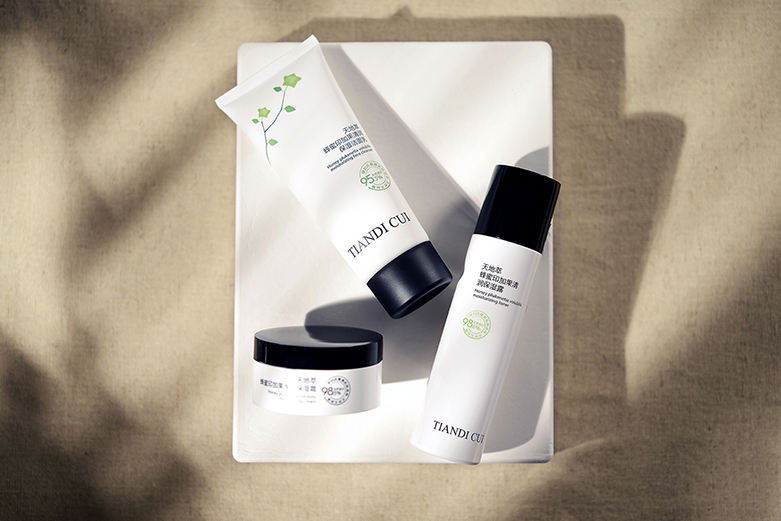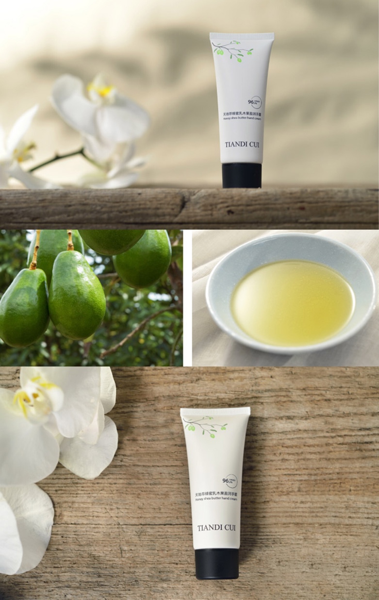 環保主張:“天地萃”堅持使用無添加的有機原料,其核心營養成份中蘊含歐盟ECO-CERT認證的有機蜂蜜提取液及西非原產的乳木果油等10種天然有機植物萃取原料,無污染,給予肌膚最健康的保護。