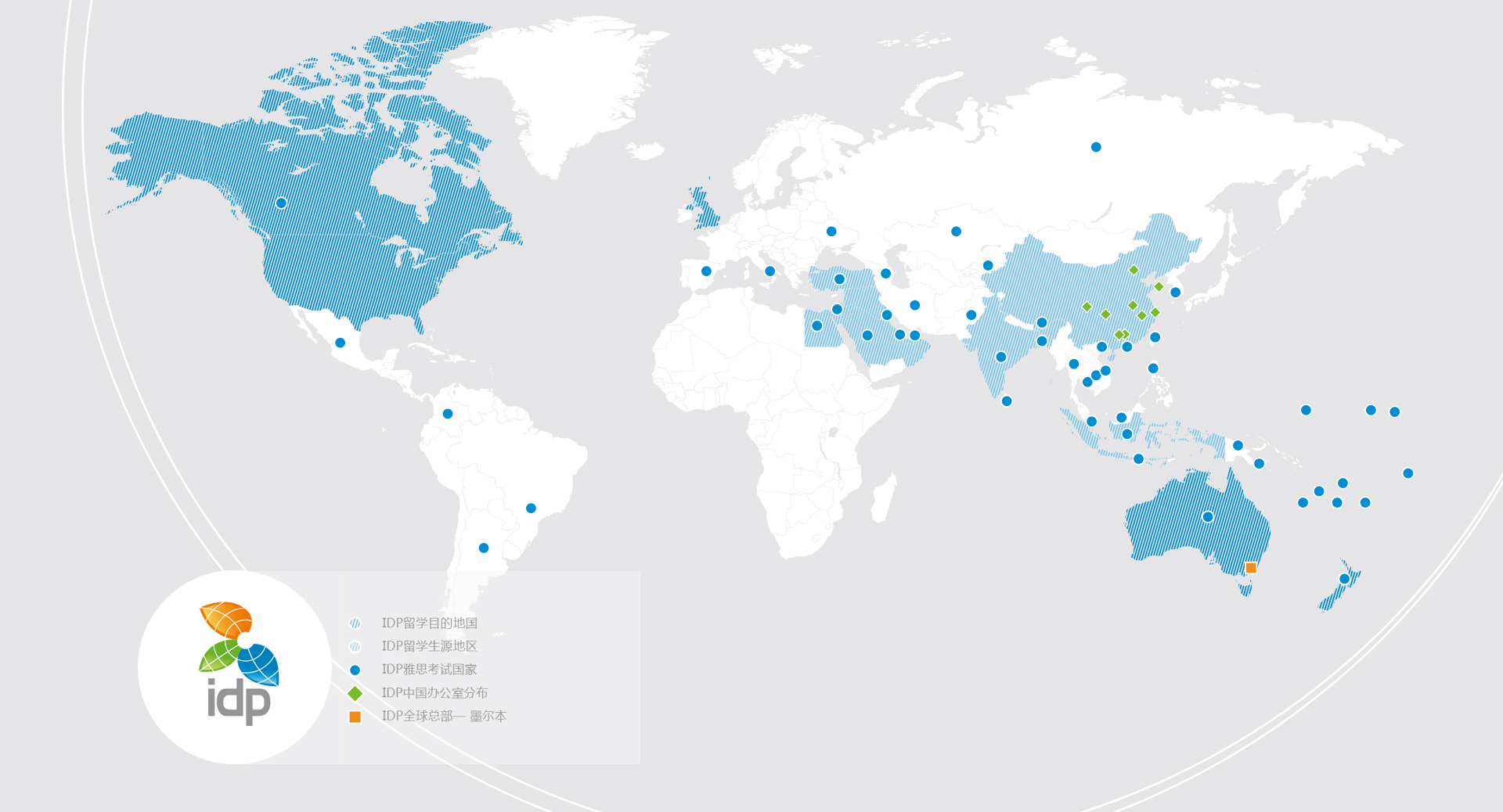 IDP教育集團是全球最大的國際教育推廣機構之一,現總部位于墨爾本。IDP教育集團成立初期為國際非盈利組織,48年以來已經成為推動和促進國際教育行業發展的領軍者,在全球32個國家設立了100多個國際學生服務中心以及上百個雅思考點,并和美國、英國、澳大利亞、加拿大和新西蘭等國的上千家教育機構建立了密切的合作關系。 迄今為止,IDP教育集團已經成功幫助40余萬名學生升入美國、英國、澳大利亞、加拿大、新西蘭的頂尖學府。