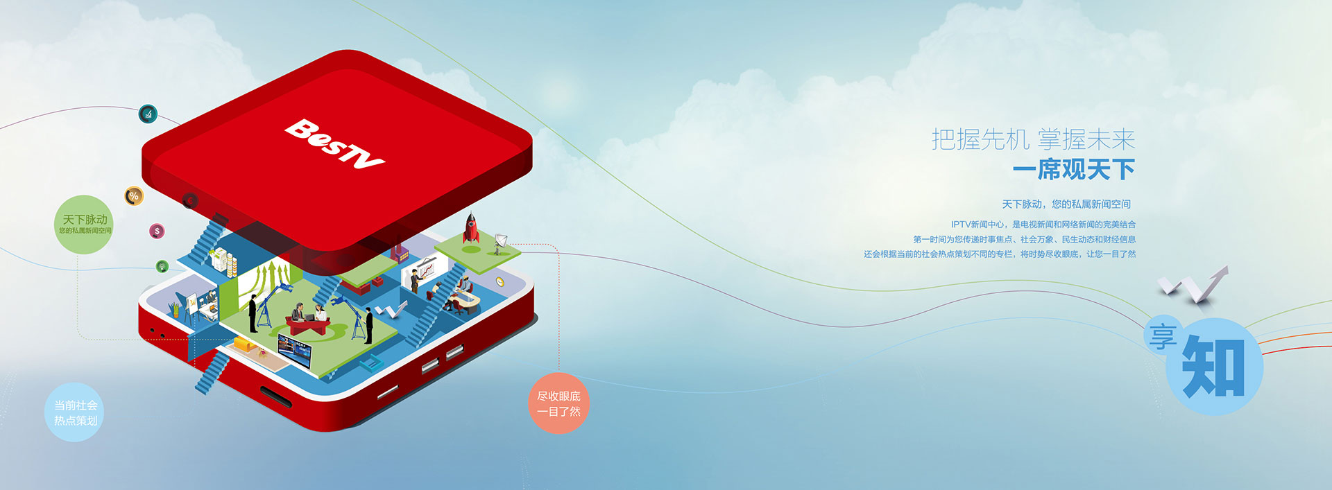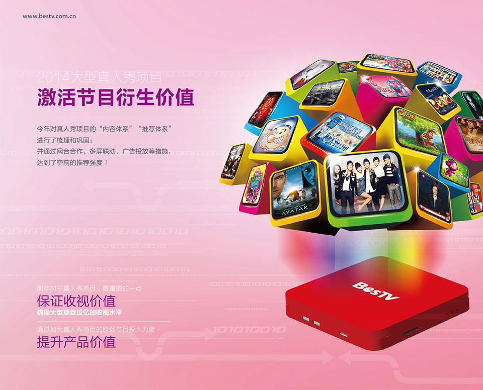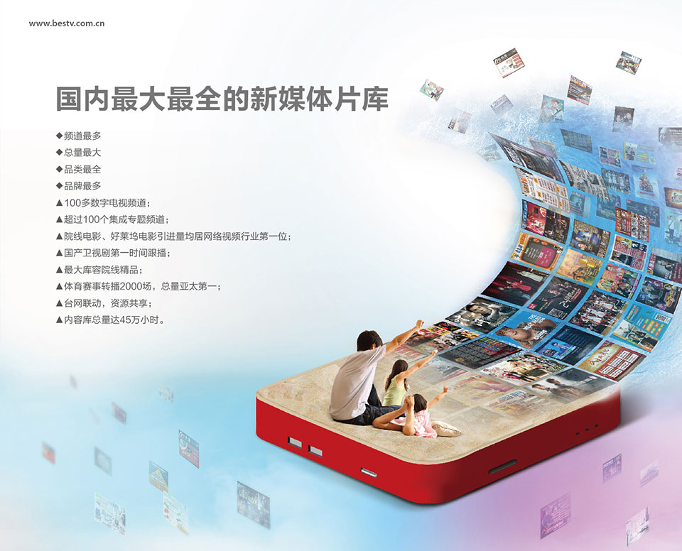 BesTV 依托SMG,擁有強大的視聽內容創(chuàng)意與生產、交互產品研發(fā)與應用、新媒體管理與運營的綜合優(yōu)勢;同時,BesTV在網絡電視(IPTV)技術方面與微軟、Cisco、華為等國際知名公司合作,擁有業(yè)界領先的媒體運營管理平臺。BesTV在中國IPTV產業(yè)中處于領先地位,國際媒體評價BesTV為全球最著 名的IPTV產業(yè)品牌之一。