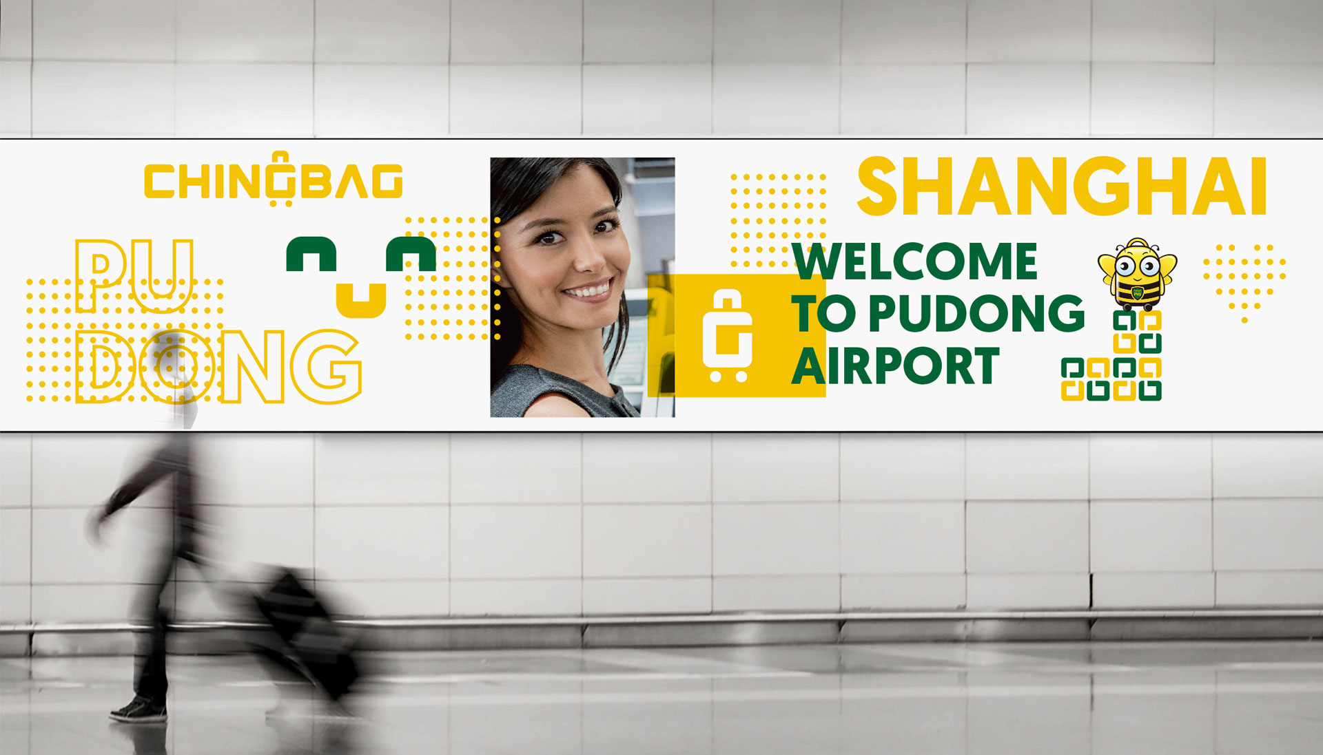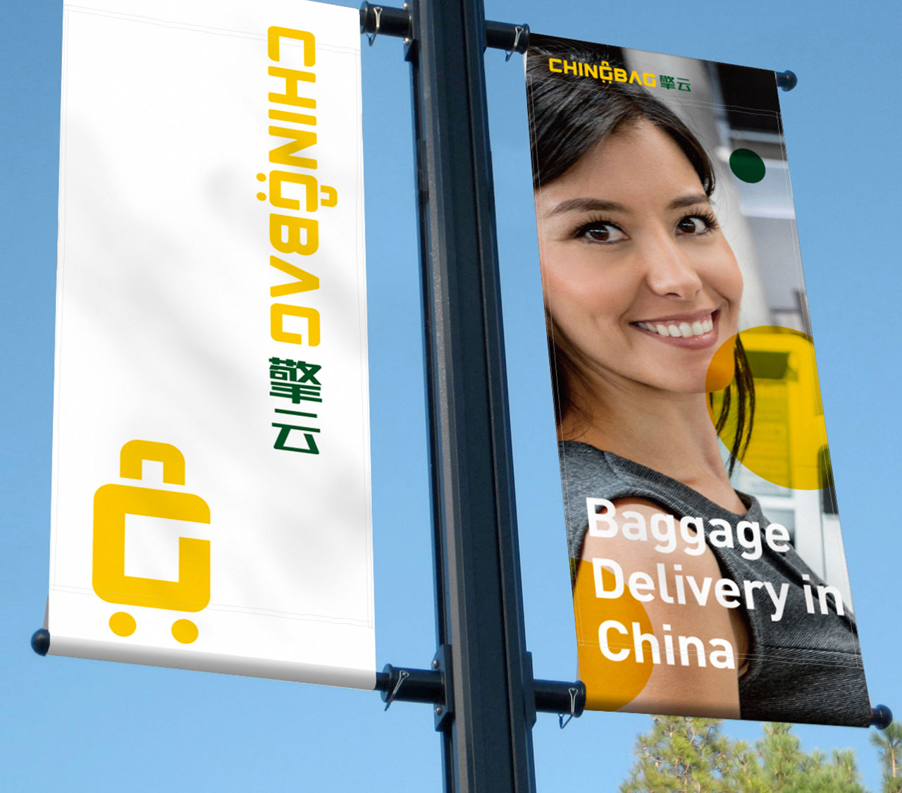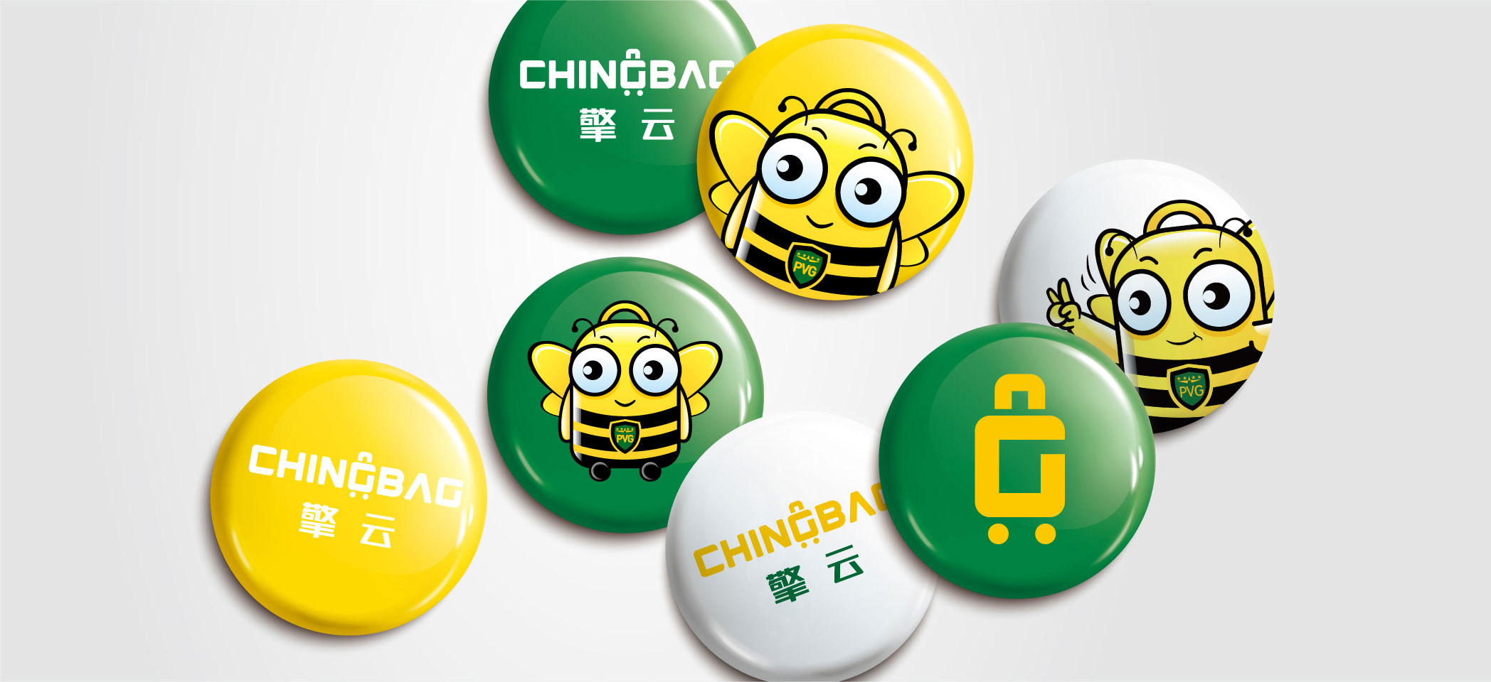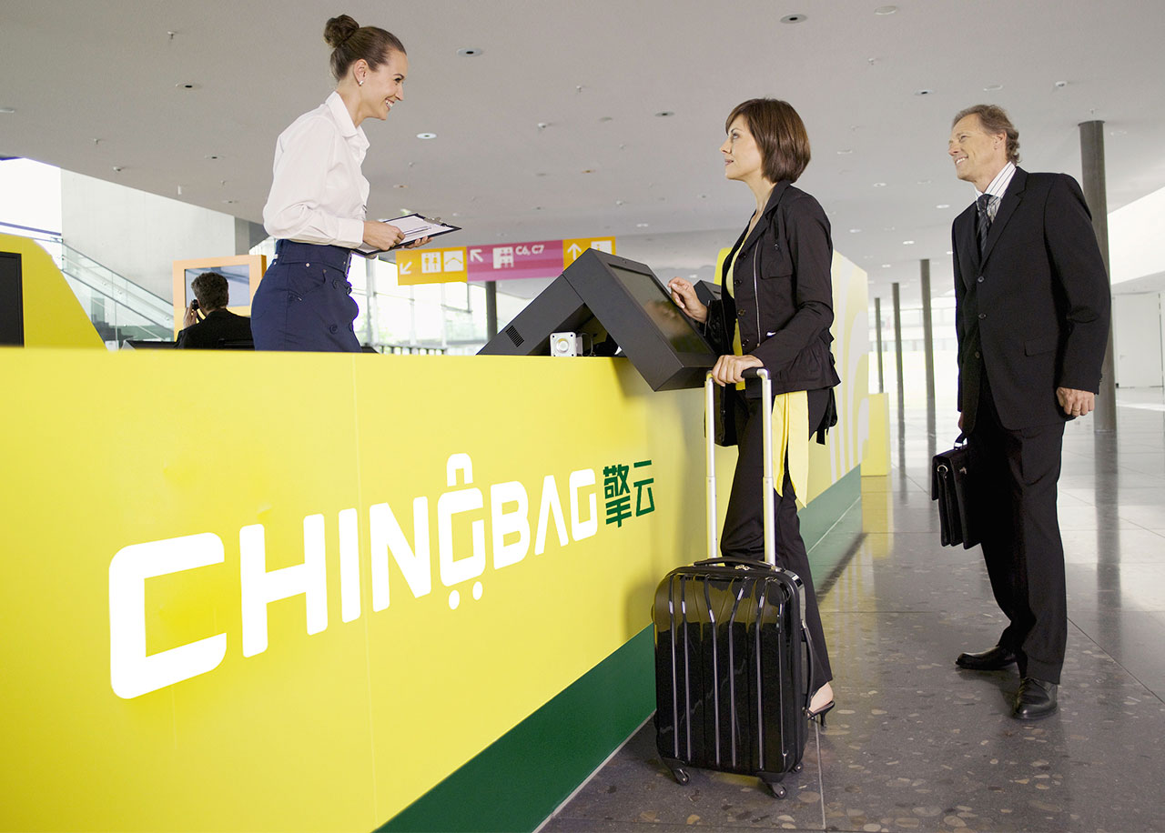 通過團隊頭腦風暴后,我們鎖定了“行李箱”這一“認知原形”。因為與旅客最相關的形象就是行李箱,它的出現,一下子就能讓人聯想到行李、旅行、出發。于是,我們將英文名稱CHINGBAG的G巧妙變形,融合行李箱形象,打造一個獨具特色的圖文復合標。