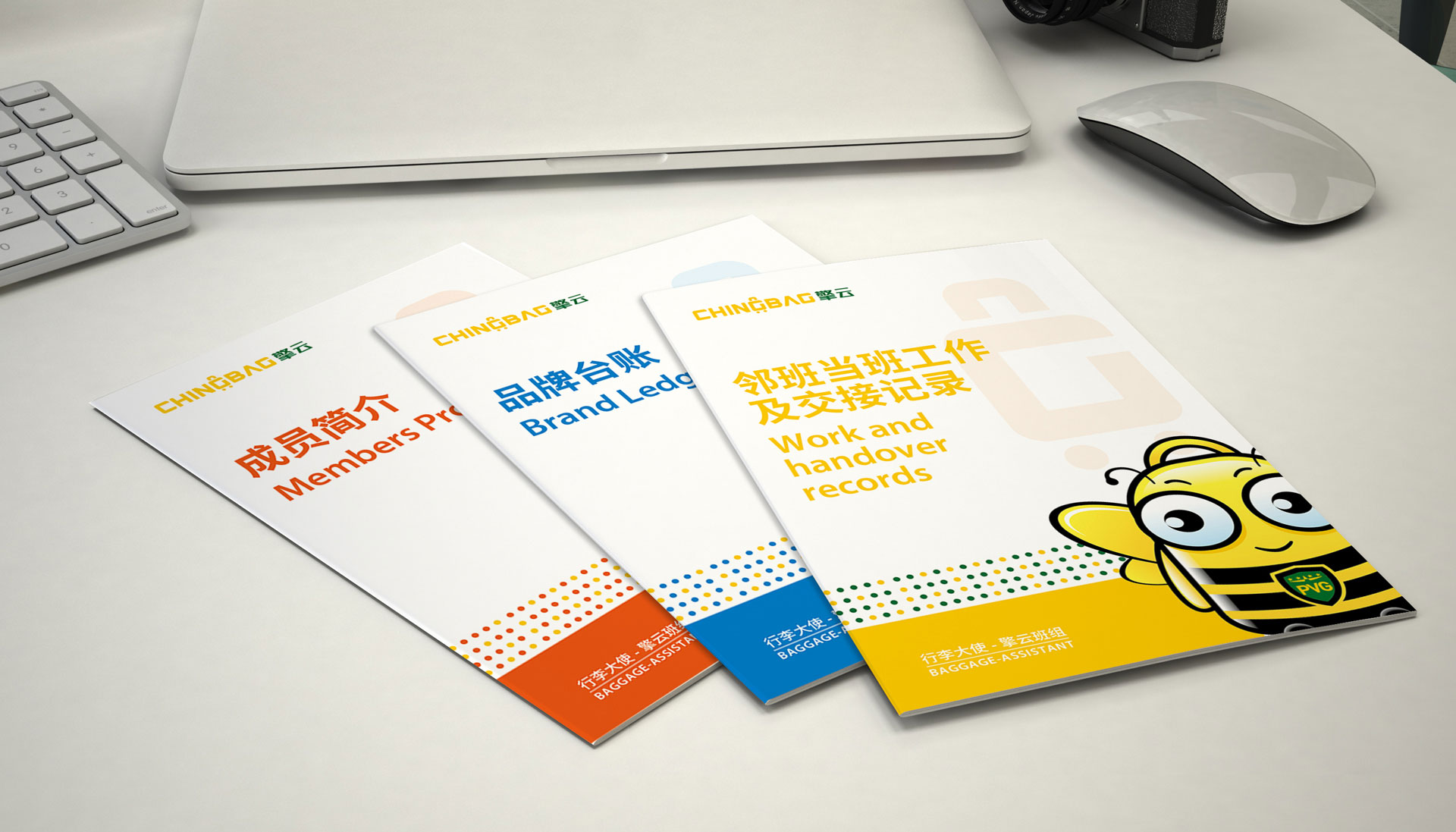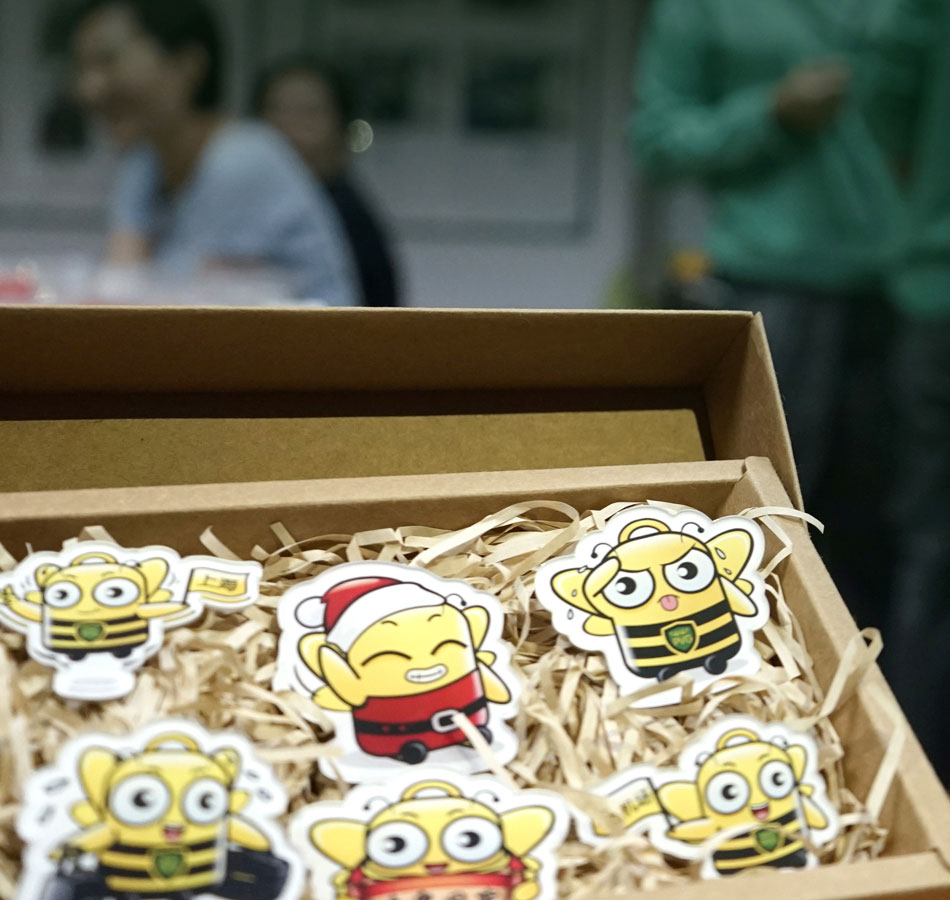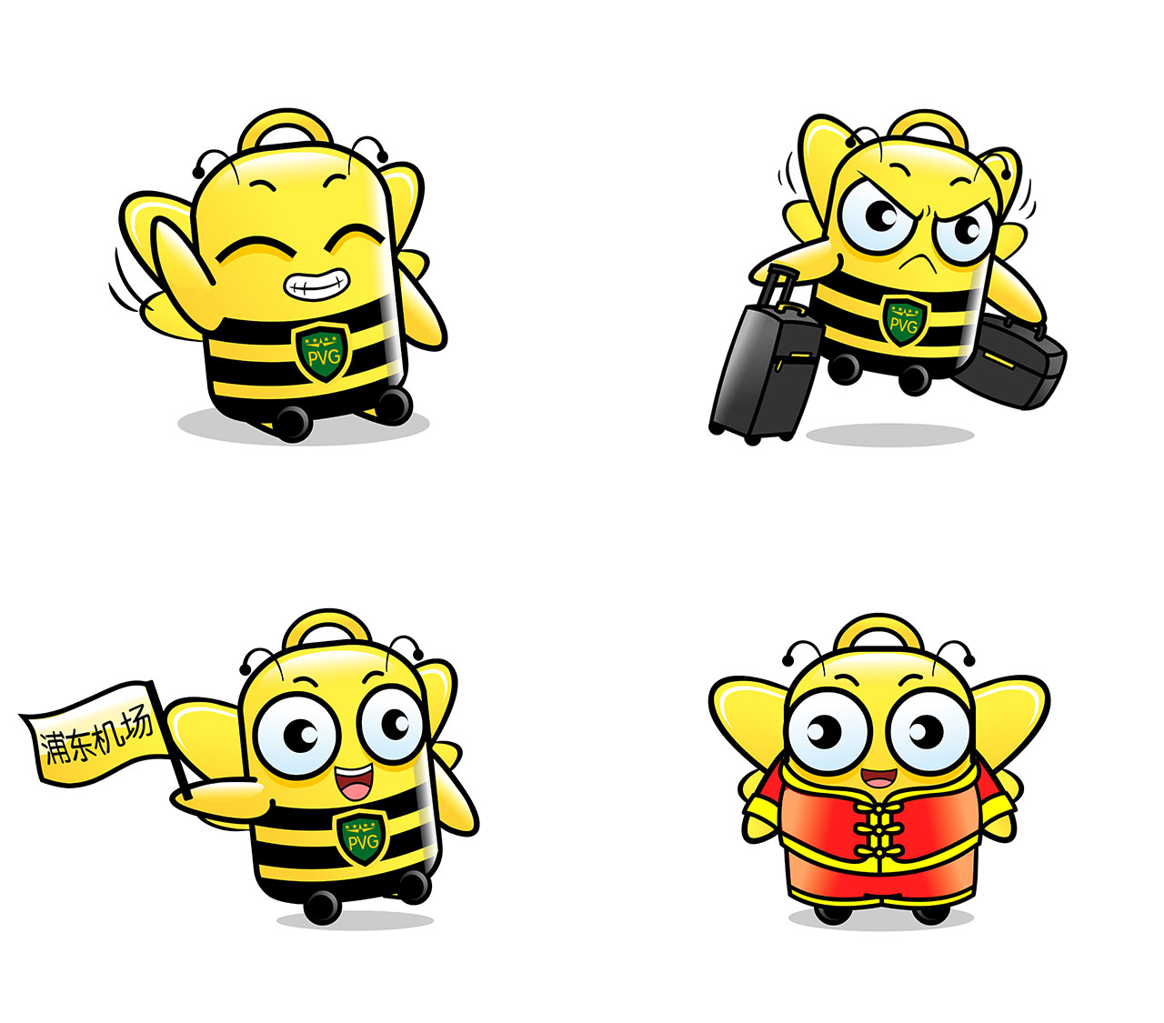 在吉祥物設計中,我們根據“行李搬運”這個工作屬性,載體用“行李箱”為原型,并結合擎云班組的服務理念,打造一個蜜蜂形象的“認知原形”,因為眾所周知,蜜蜂是最能體現勤勞、團結的動物意象。人類對蜜蜂有共同的價值認知,它就是最小的記憶單元,能夠將自身的認知基礎迅速嫁接給品牌,降低品牌的傳播成本。