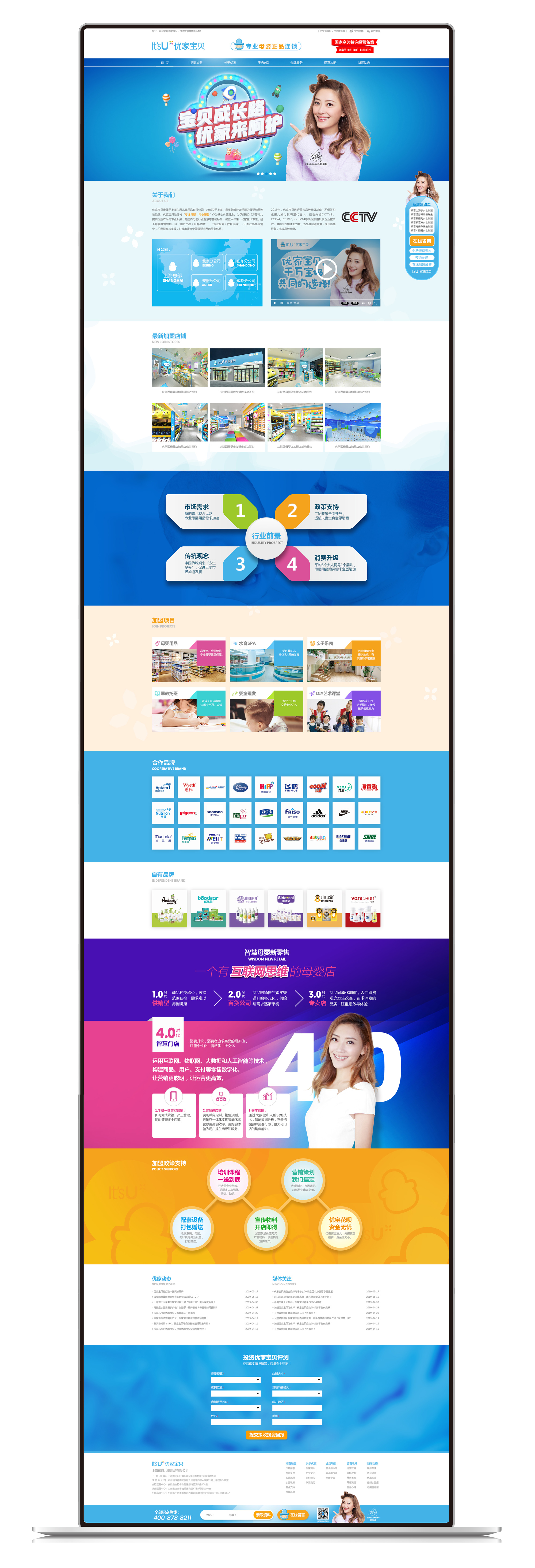 優家寶貝隸屬于上海東恩兒童用品有限公司,總部位于上海,是商務部特許經營的母嬰加盟連鎖品牌。優家寶貝始終將“專注母嬰,用心服務”作為核心價值理念。為孕婦和0-6歲嬰幼兒提供優質產品與專業服務。成立九年來,優家寶貝專注于線下母嬰零售領域。以“知名產品+自有品牌”、“專業服務+教育內容”,不斷在品牌運營中,積極探索與實踐,打造出適合中國母嬰消費的服務體系。