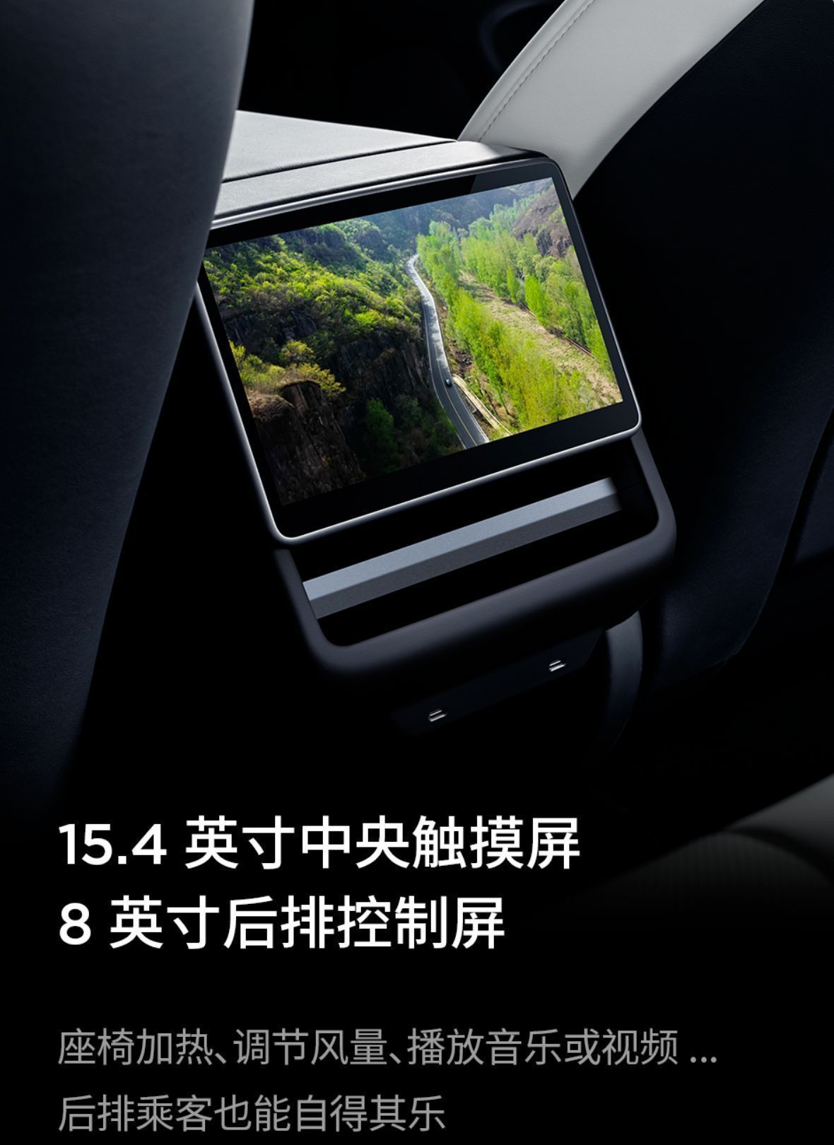 【新增后排8英寸控制屏】標配8英寸后排觸摸屏,可控制座椅加熱,調節空調風量,播放音樂和視頻。
